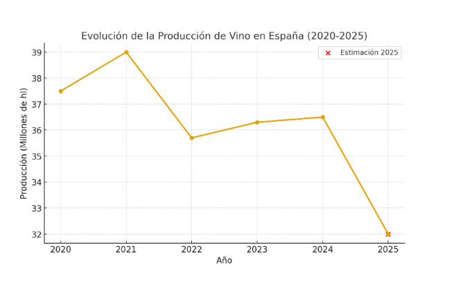 3. ¿Cuál ha sido la producción estimada de vino en España en 2025?